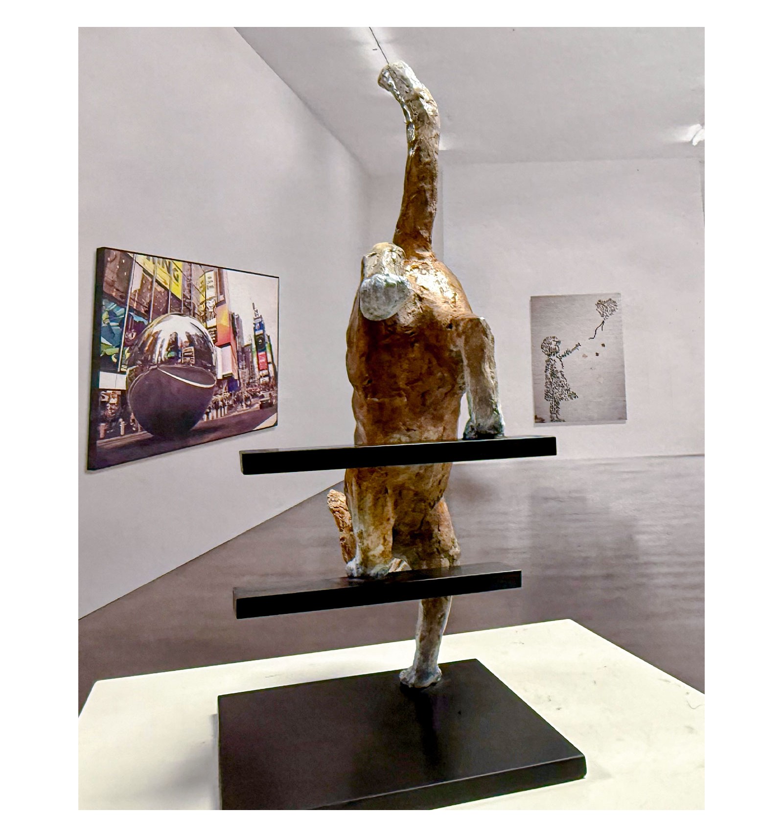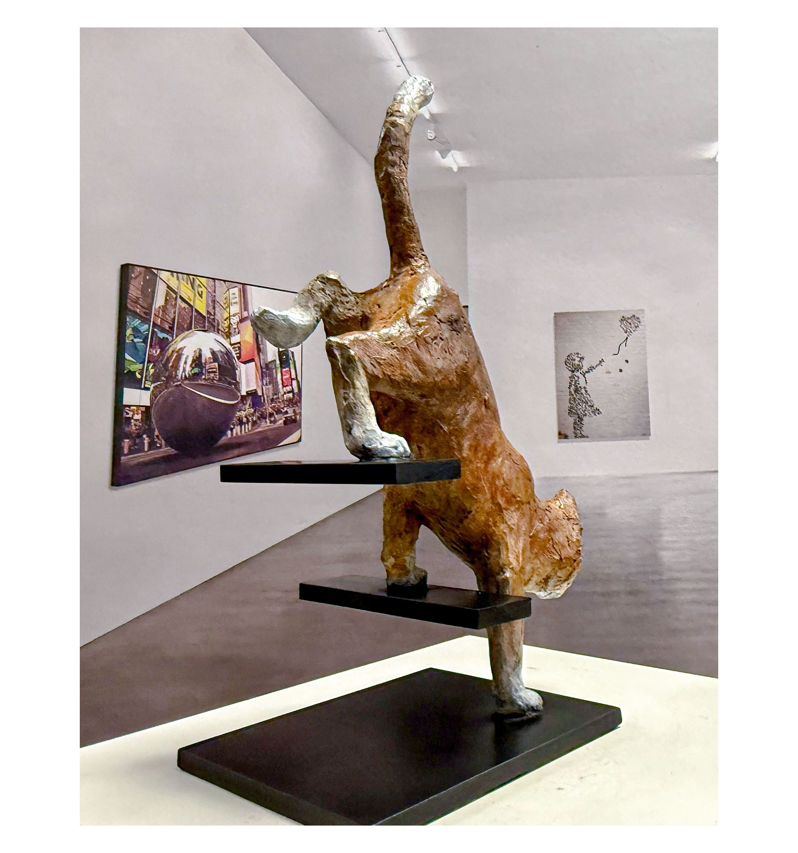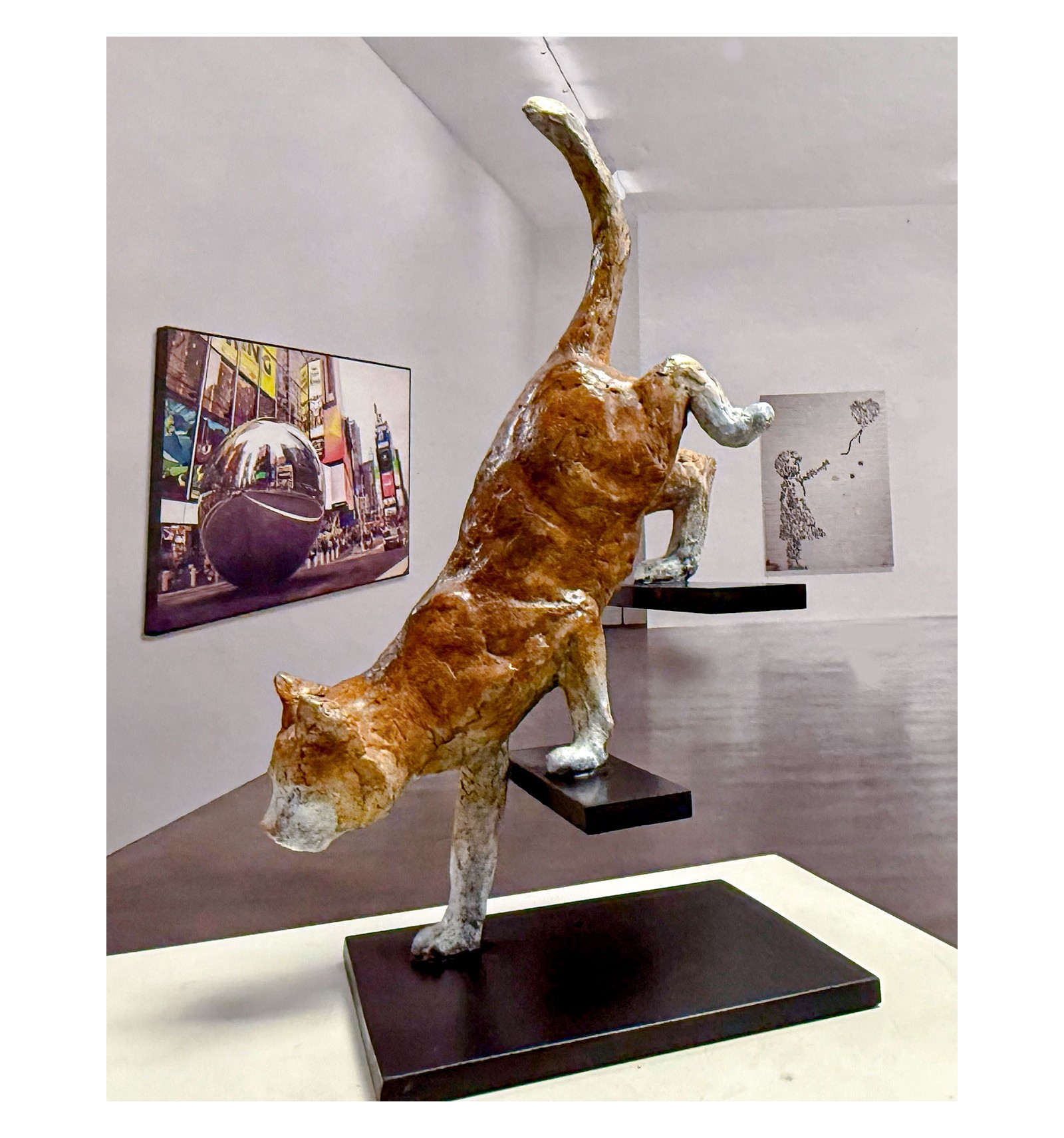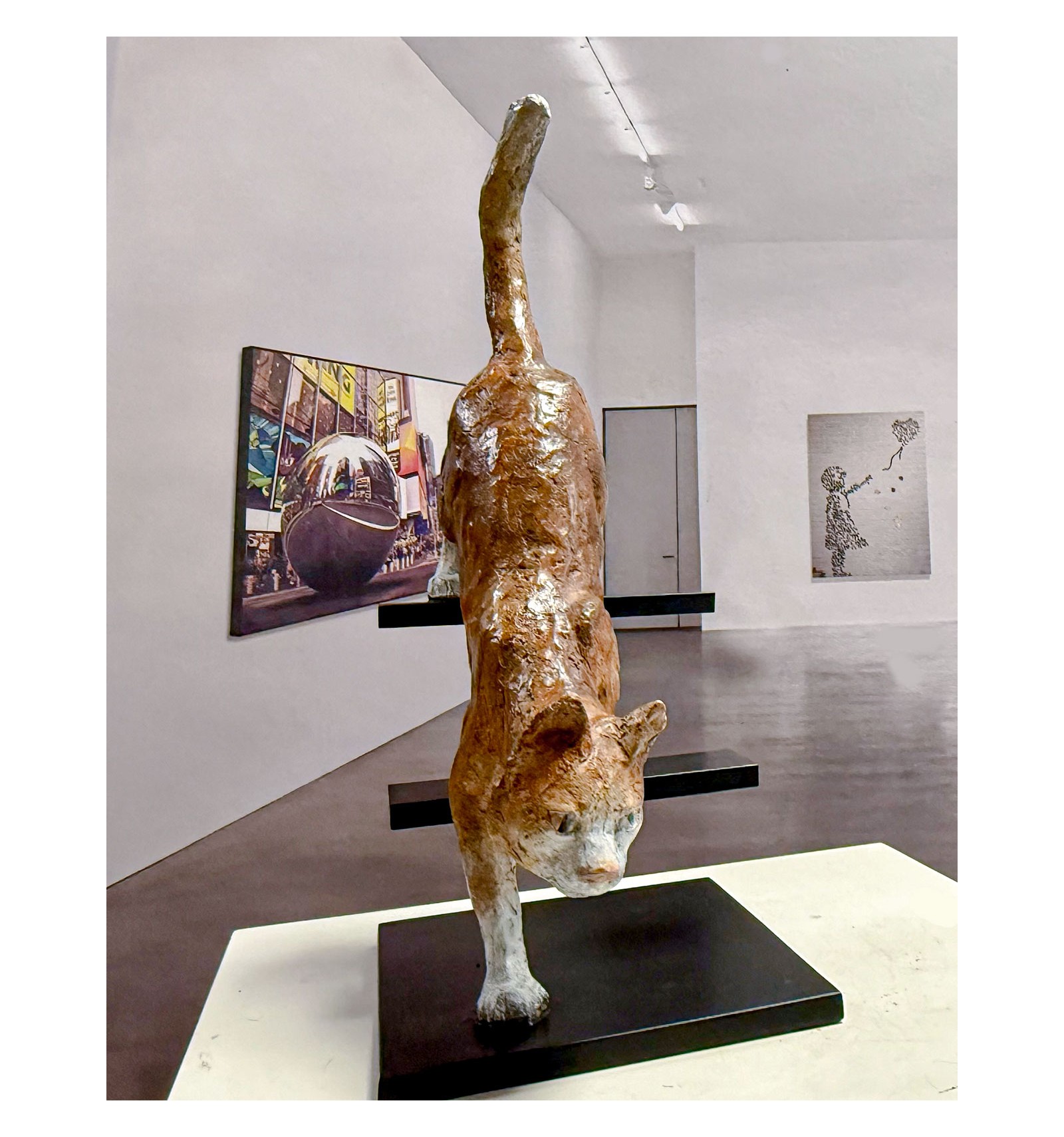 This impressionist sculpture by Miguel Guía precisely captures the hypnotic sensation we experience when watching a feline walk. A cat in full motion is suspended within a composition designed to suggest the descent of a staircase—a familiar gesture that, for a fleeting moment, becomes almost magical.