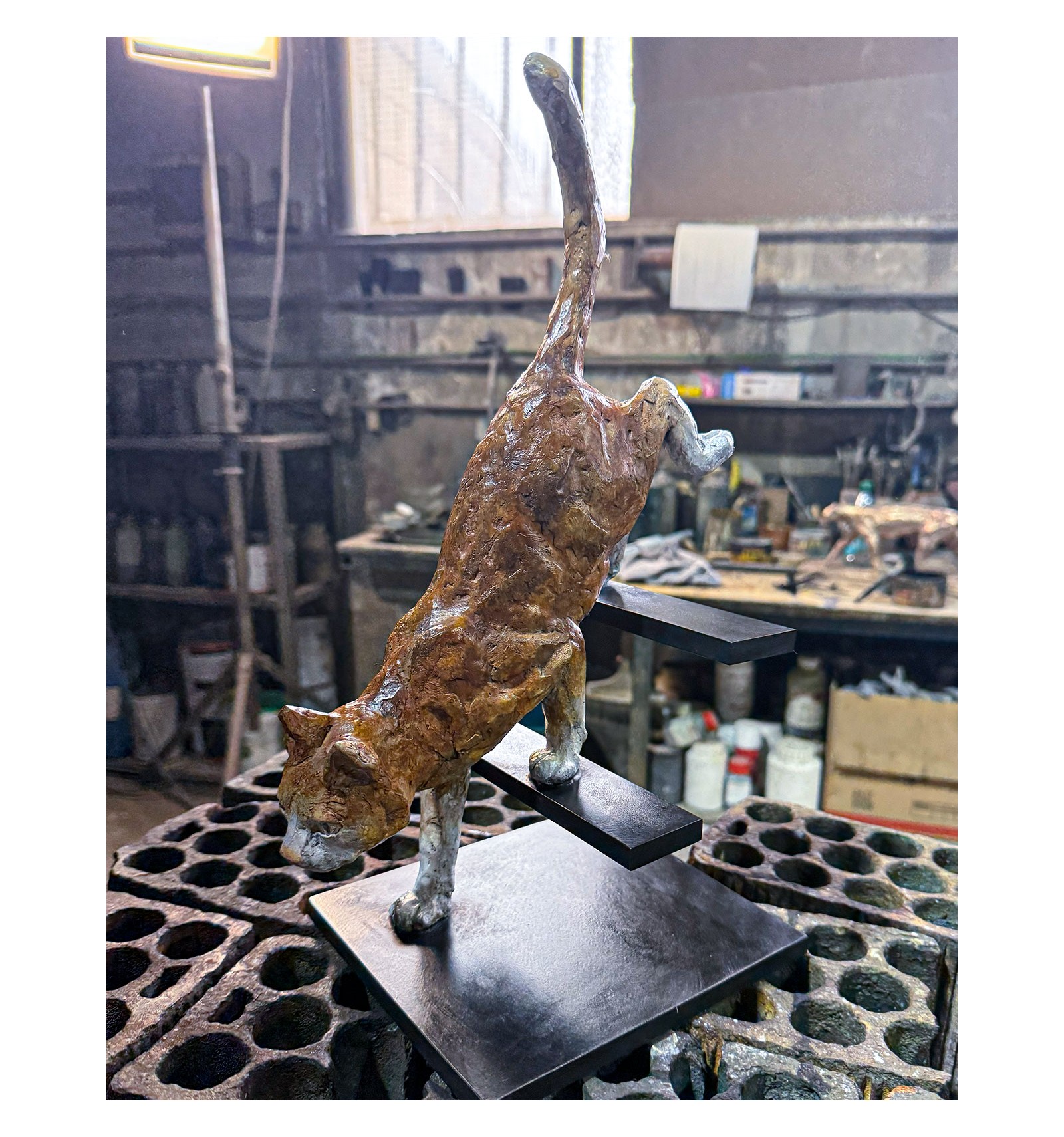 The work relies on the freshness of impressionist modeling to enhance volume and bodily tension, while the degraded oxide patina introduces an entirely new dimension. The surface becomes a rich visual skin, shifting between light and shadow as if the animal carried the trace of time upon itself. The result is a sculpture with greater character and presence, offering a raw yet elegant aesthetic in which the material itself tells the story.