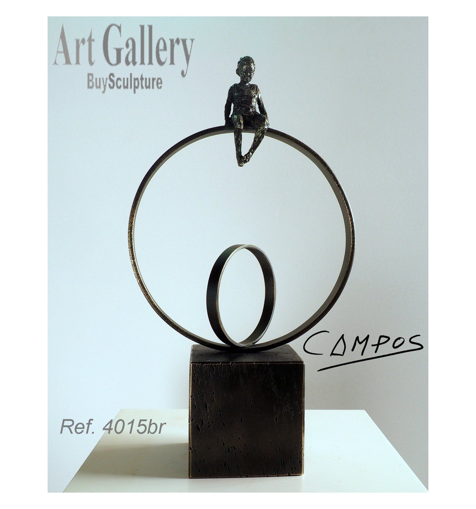 Jesus Campos turns to the world of children and their games to recreate this collection of impressionist sculptures, modeled with boldness and freshness, captivating the realism of the volumes. The metal circles and squares confer a personal form of treating the intimacy of the moment which captivates us with the first glance. The sculpture reminds us of the sheer beauty of the childhood and the worlds we have all been creating.