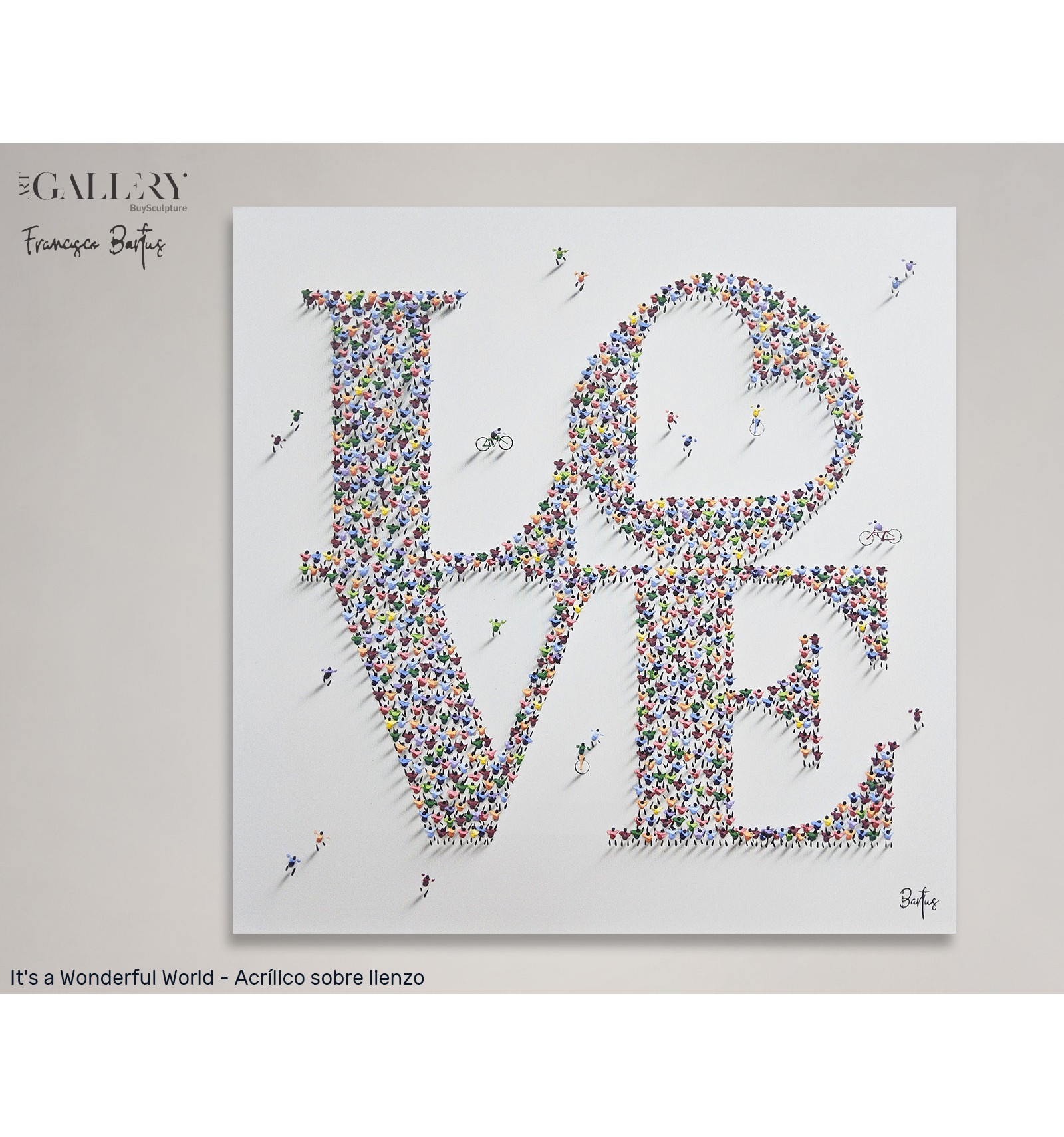 At the request of its collectors, the Buysculpture art gallery presents for sale an exclusive original artwork entitled It’s a Wonderful World, created using acrylic on canvas by the internationally renowned artist Francisco Bartus.