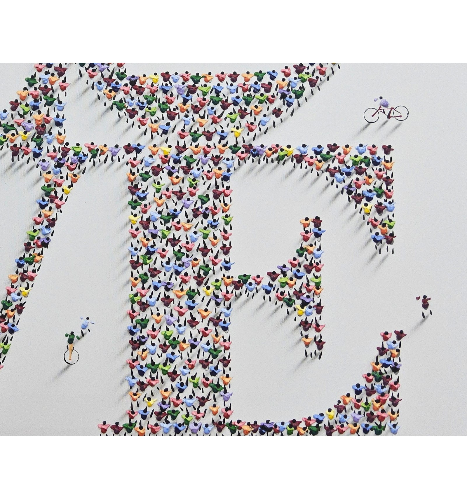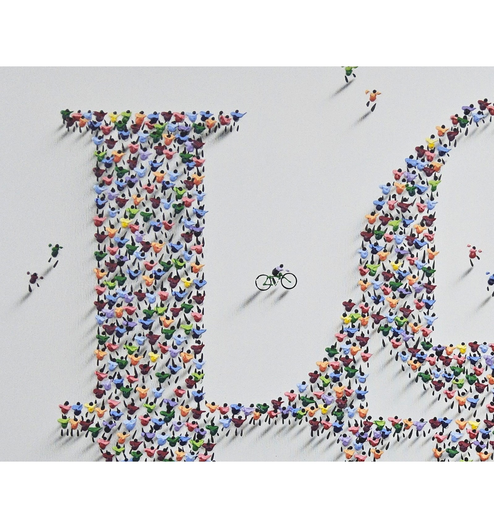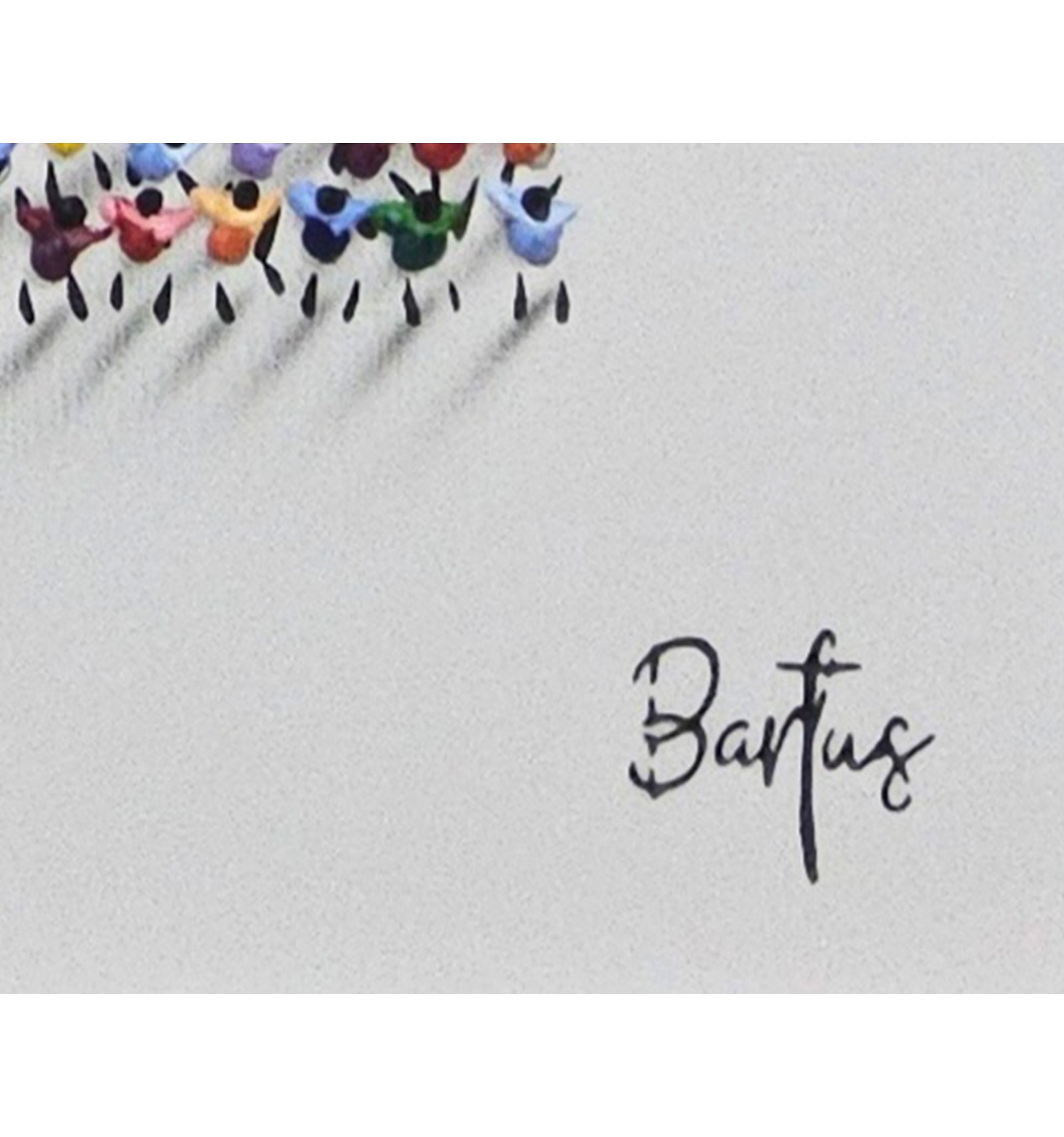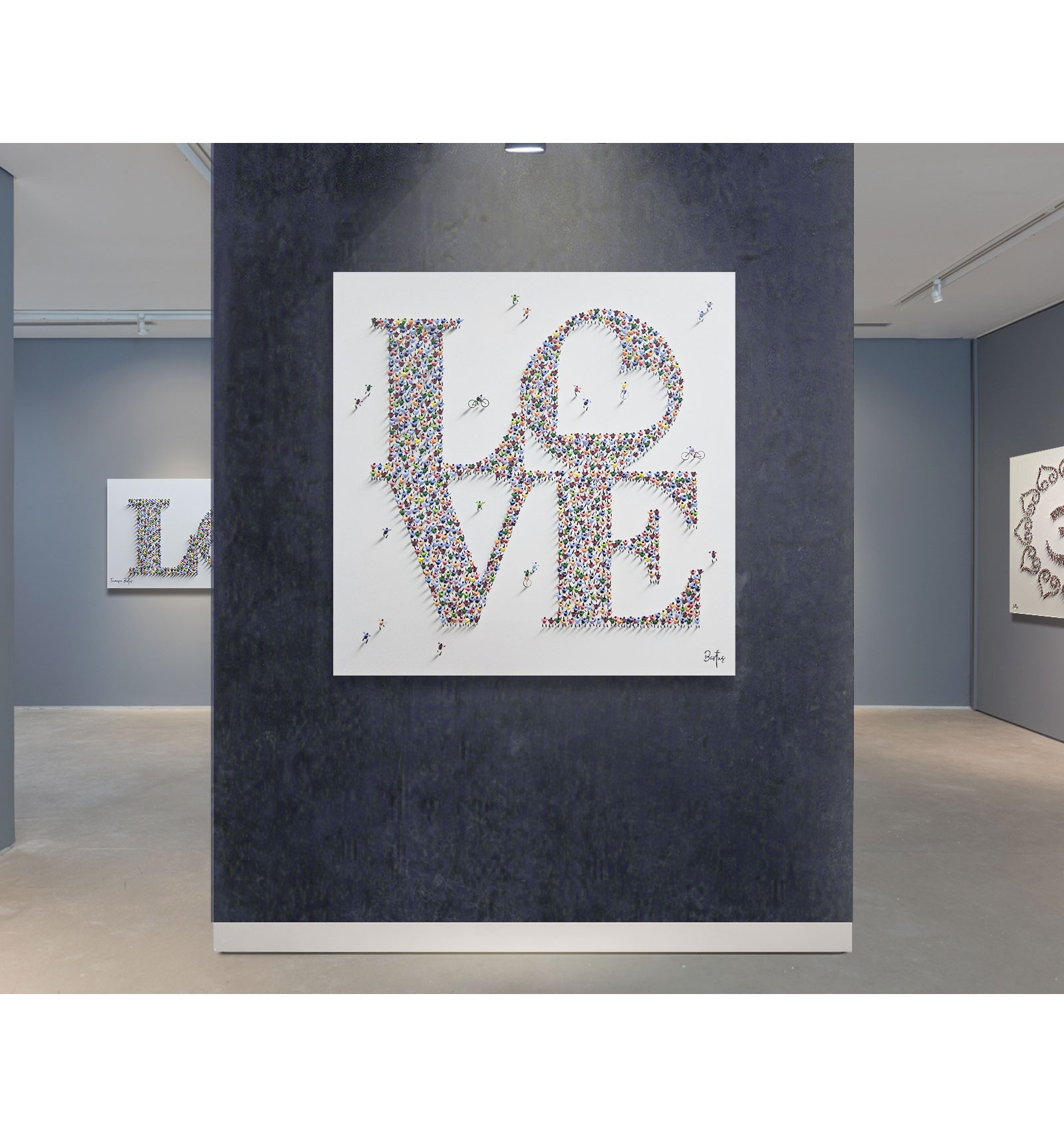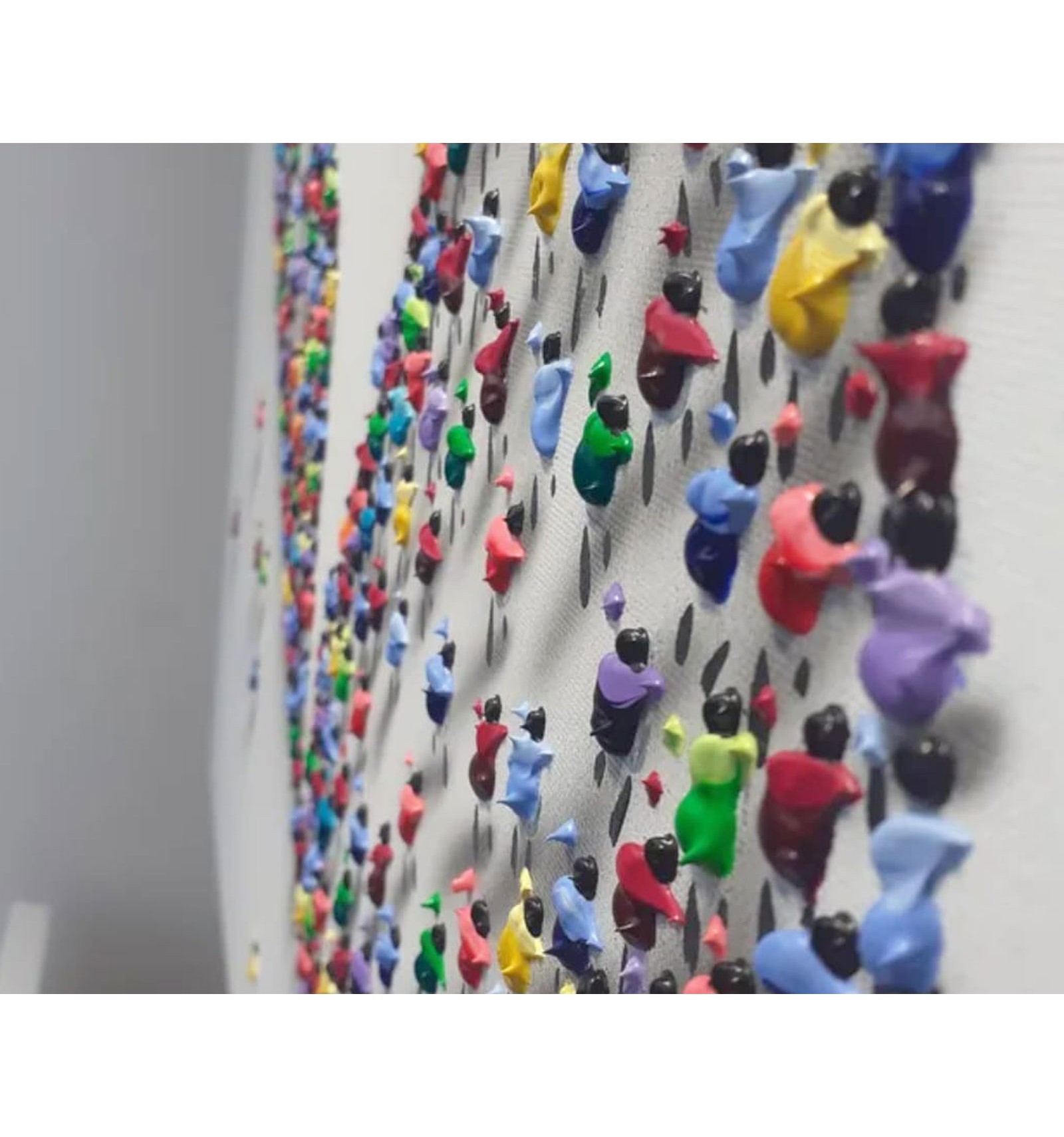 In this piece, the painter offers an optimistic and deeply human vision of the reality we share. The composition, formed by a multitude of small figures that build a common message, symbolizes how the world’s beauty does not lie in the isolated individual, but in the sum of lives, movement, and relationships that inhabit it. The artwork conveys a sense of harmony, coexistence, and hope, inviting the viewer to reflect on the value of the everyday and the collective as the foundation of a better world. Ethics and aesthetics come together once again under the gaze and brush of Francisco Bartus.