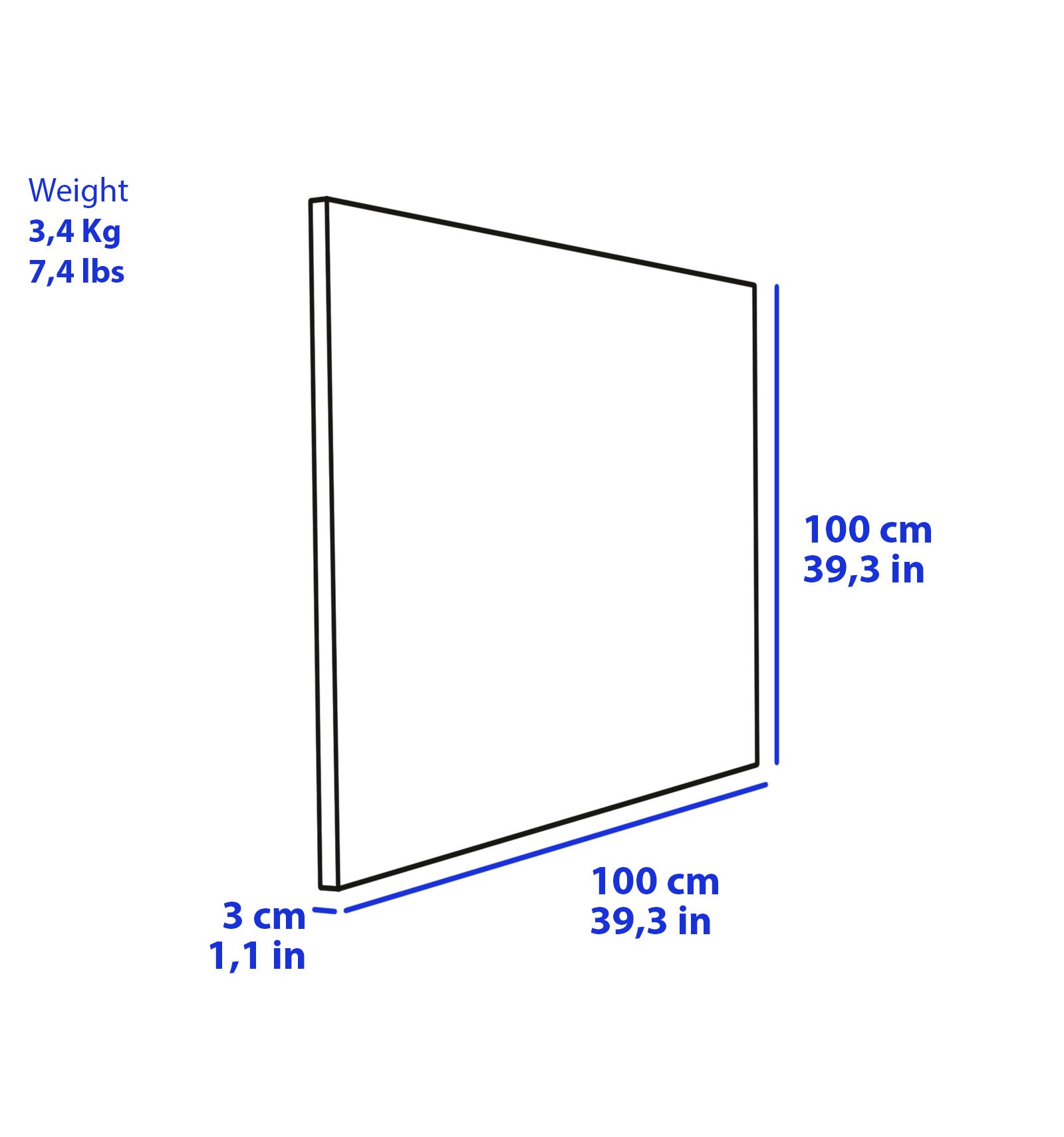 - 100 x 100 x 3 cm / 39.37 x 39.37 x 1.18 in