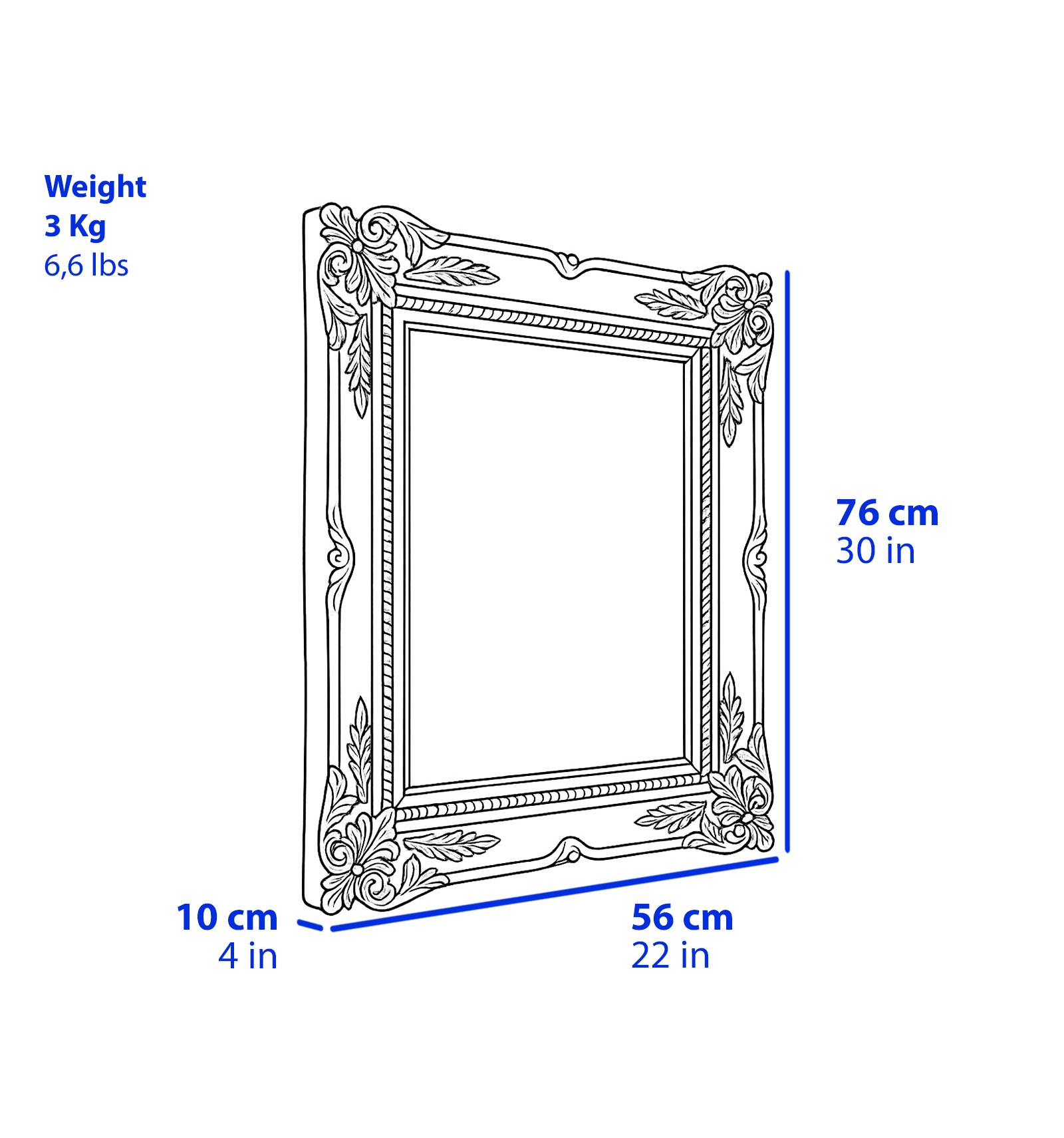 - 76 x 56 x 10 cm / 29.93 x 22.05 x 3.94 in