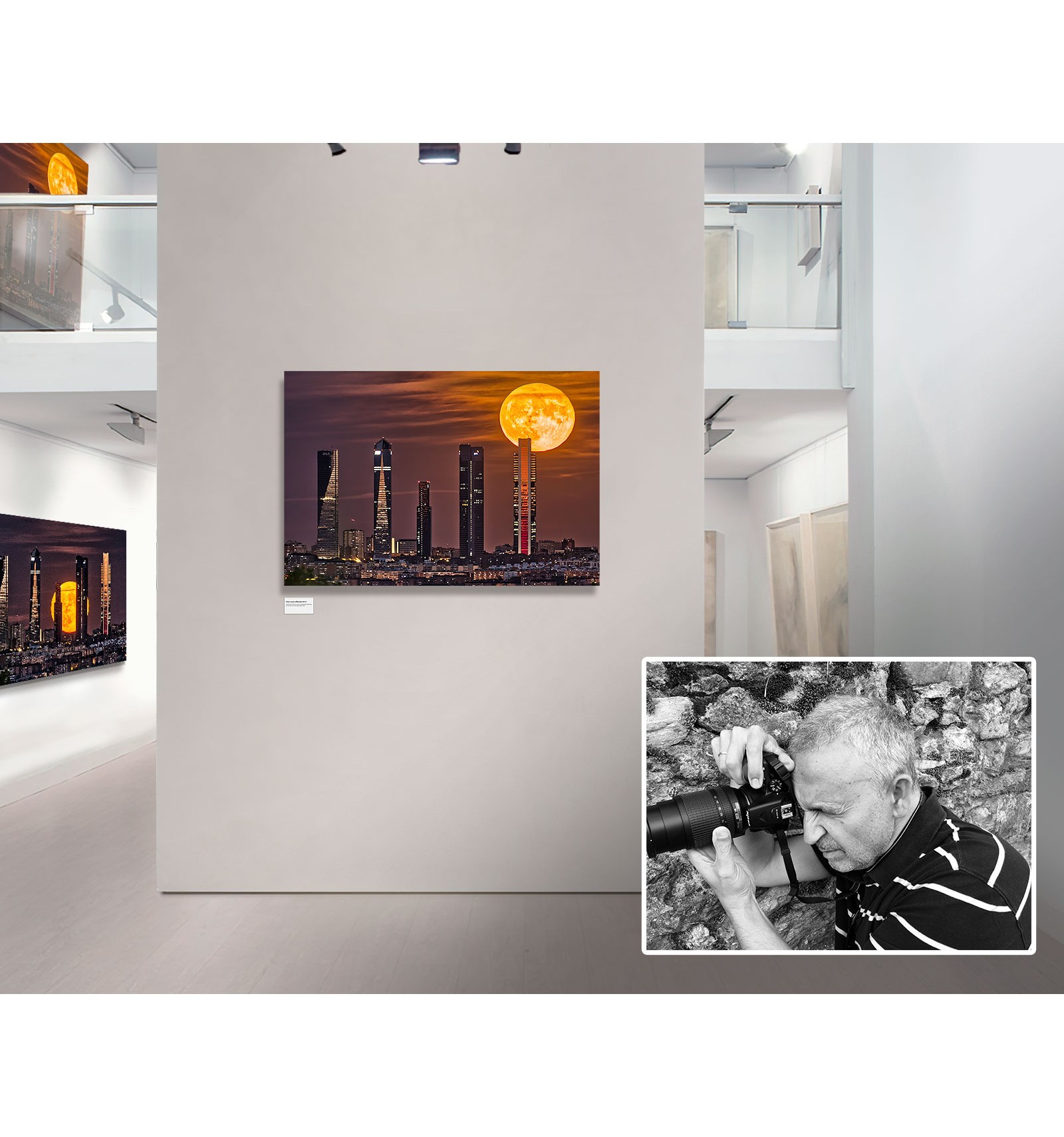 Material used to reproduce the work: J. M. Orellana used dibond aluminium, a material that provides an exceptionally pure and authentic effect thanks to the absence of glazing. It is composed of three layers: two aluminum plates coated in platinum white that encapsulate a black polyethylene core. The thin, robust foil covering the photo print protects the dibond aluminium image effectively and without bubbles.